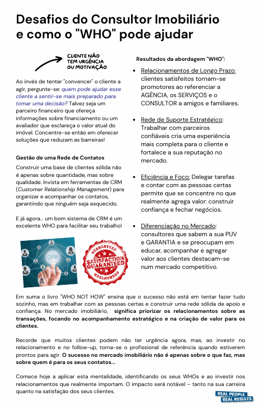 Resumo do livro "WHO NOT HOW"